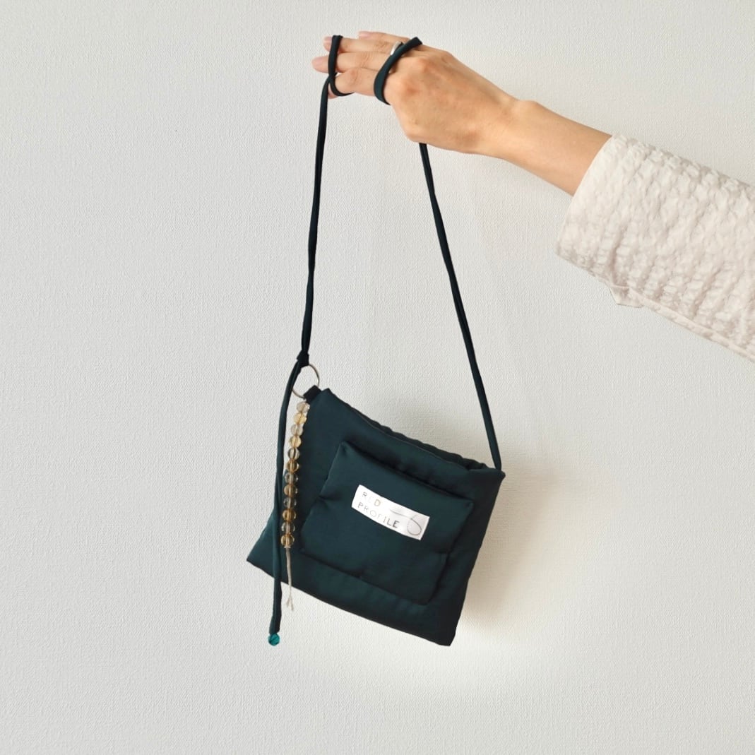 サテン生地を使用したポシェットは、プクプクふっくらとしたフォルムがポイント。