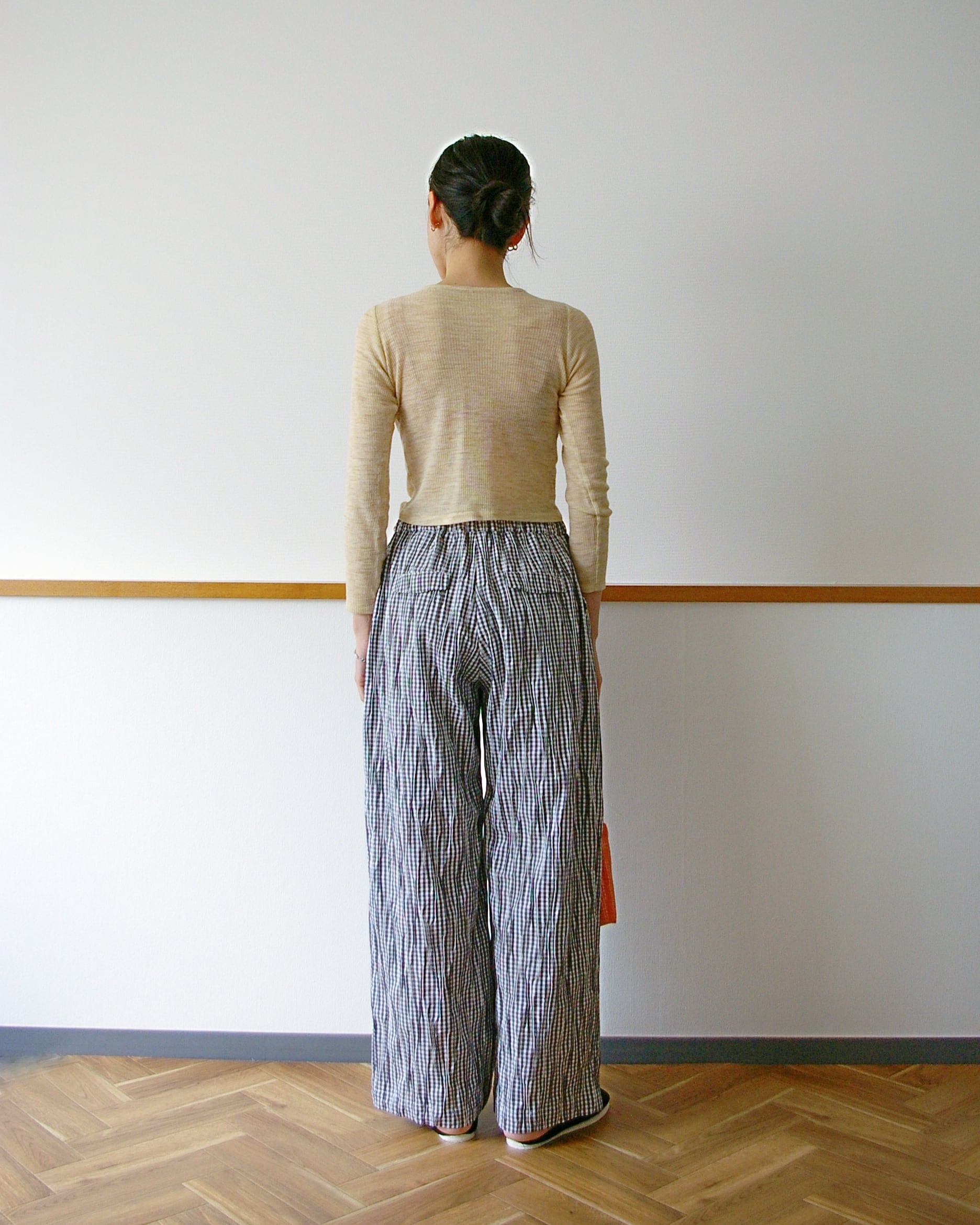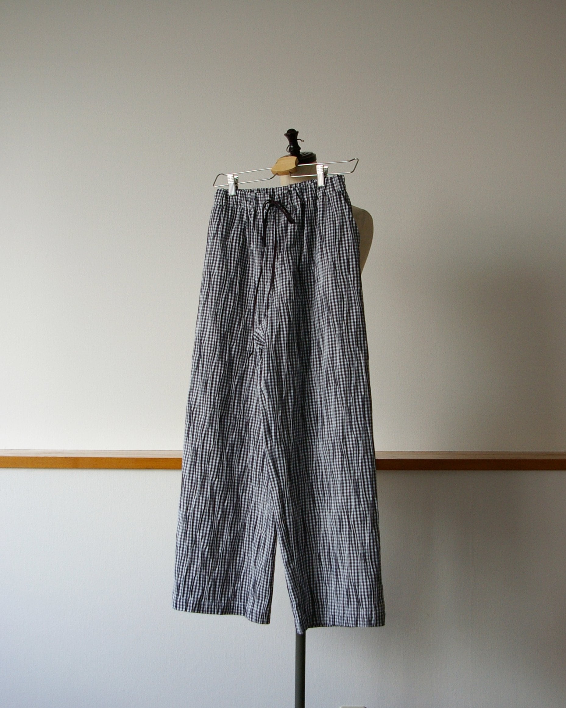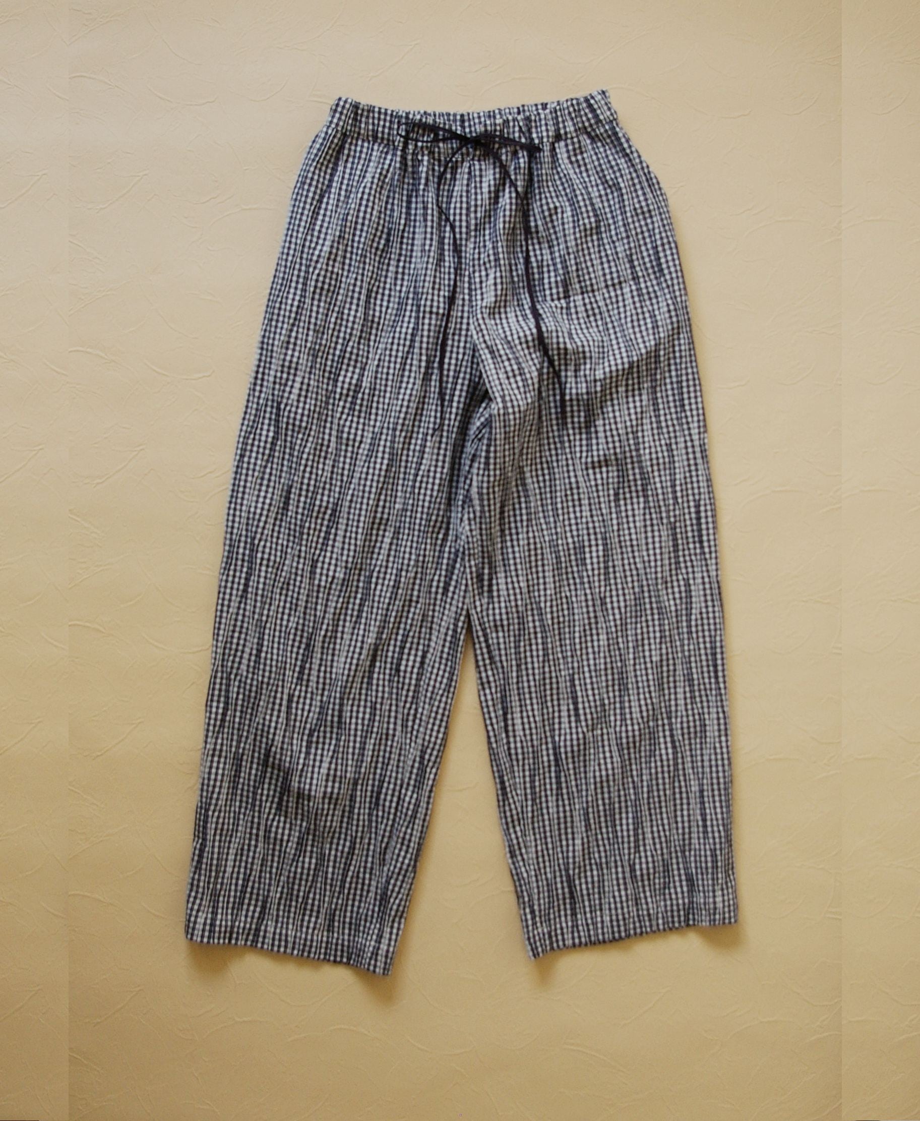 ウエストはゴム入りで楽ちんです。フロントの飾り紐をポイントに。